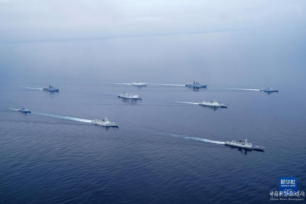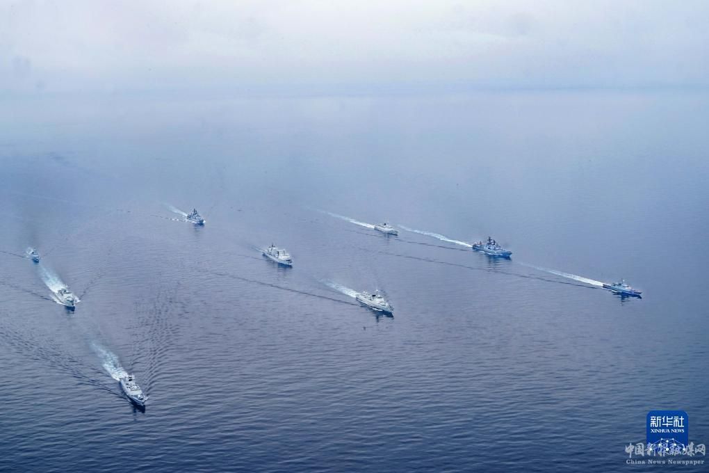 7月20日,在日本海某海域進(jìn)行的“北部·聯(lián)合-2023”演習(xí)中,中俄雙方艦艇編隊(duì)航行。新華社發(fā)(張海龍 攝)