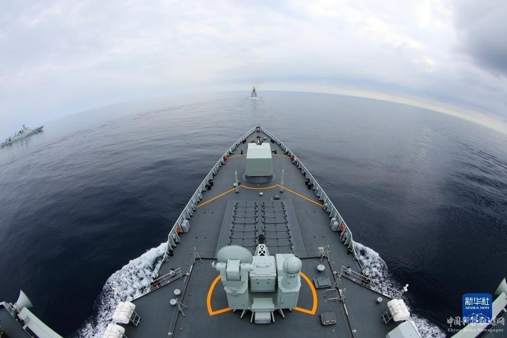 7月20日,在日本海某海域進(jìn)行的“北部·聯(lián)合-2023”演習(xí)中,中方海上作戰(zhàn)群指揮艦齊齊哈爾艦破浪前行。新華社發(fā)(張海龍 攝)