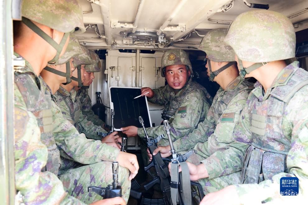 中部戰(zhàn)區(qū)陸軍第83集團軍某旅“楊根思連”連長仇安(右三)組織骨干在對抗演練中研究戰(zhàn)術(shù)(5月25日攝)。新華社發(fā)(季鵬 攝)
