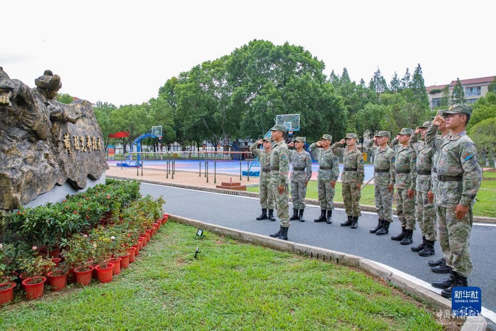 空降兵某旅“黃繼光英雄連”官兵面向黃繼光銅像進行宣誓(2023年6月29日攝)。新華社發(fā)(謝程宇 攝)