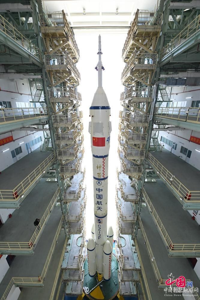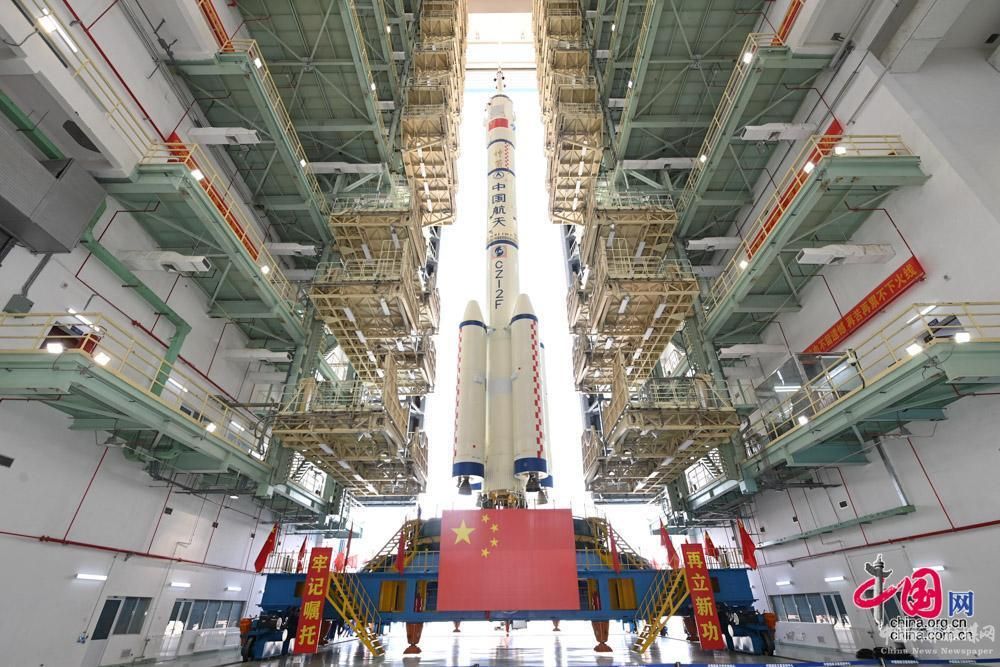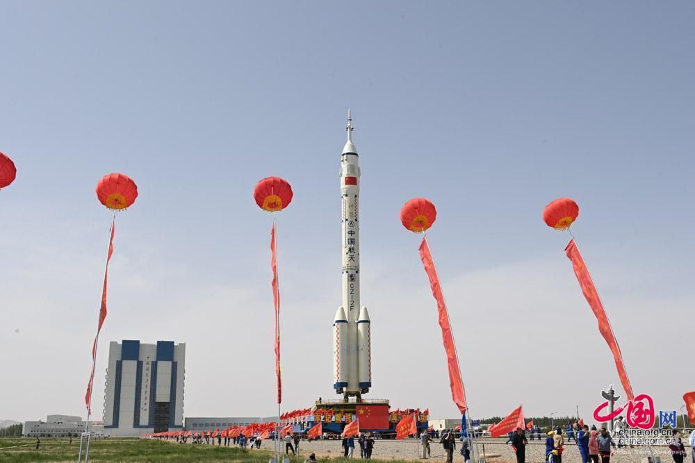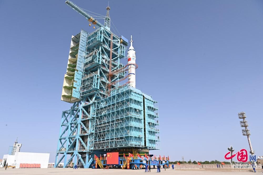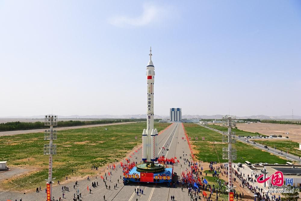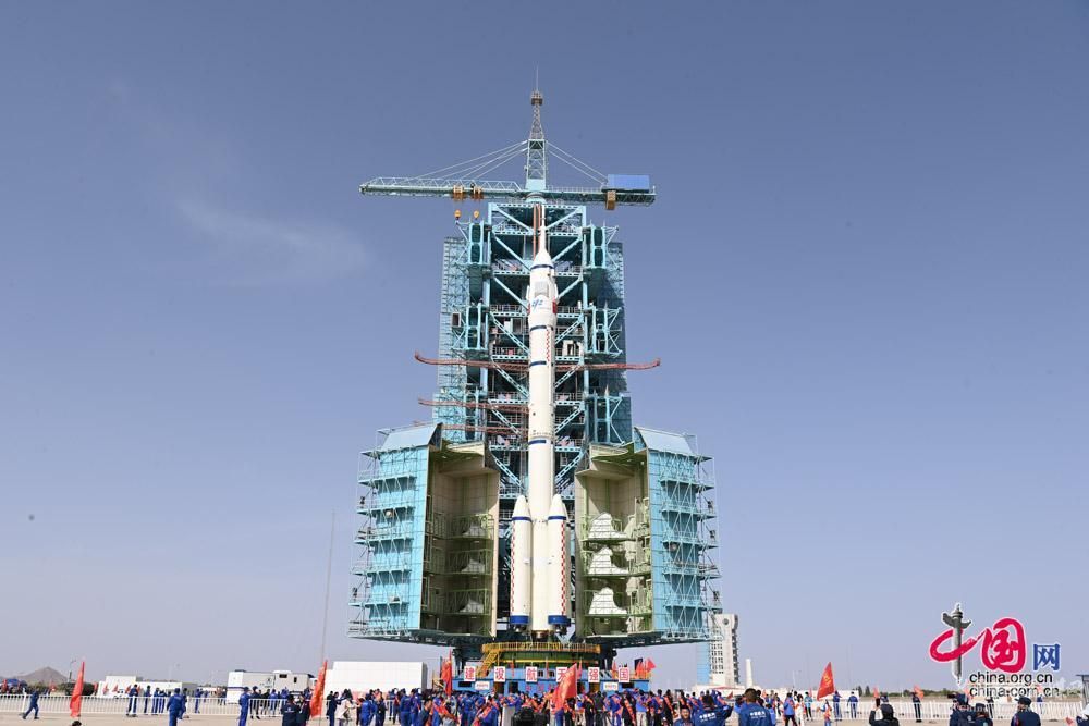 北京時間2023年5月22日,神舟十六號載人飛船與長征二號F遙十六運載火箭組合體已轉(zhuǎn)運至發(fā)射區(qū)。中國網(wǎng)發(fā) 汪江波 攝影
