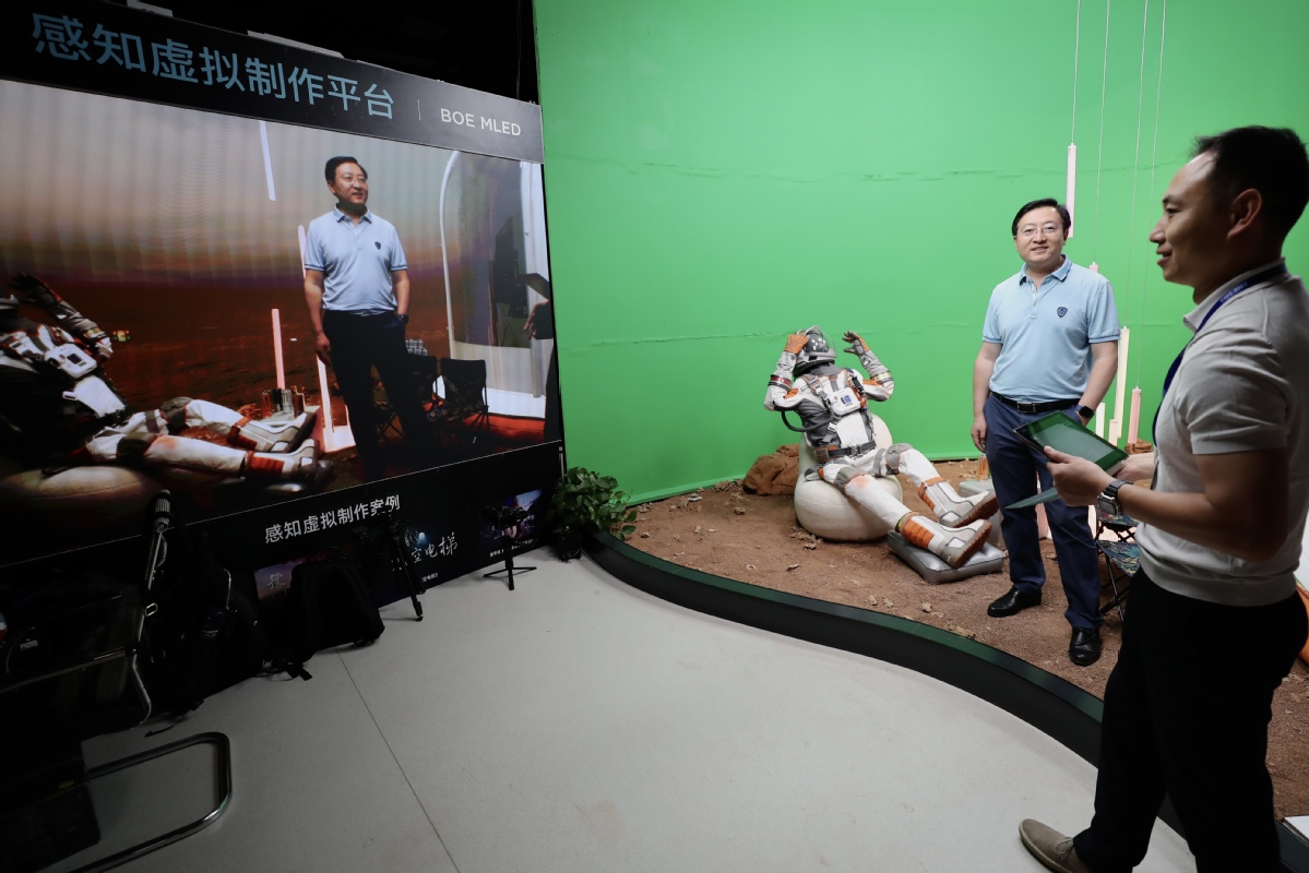 5月30日,2023中國科幻大會科幻產(chǎn)業(yè)新技術(shù)新產(chǎn)品展“漫步未來”展區(qū),觀眾體驗(yàn)綠幕虛擬拍攝。中國日報(bào)記者 張威 攝