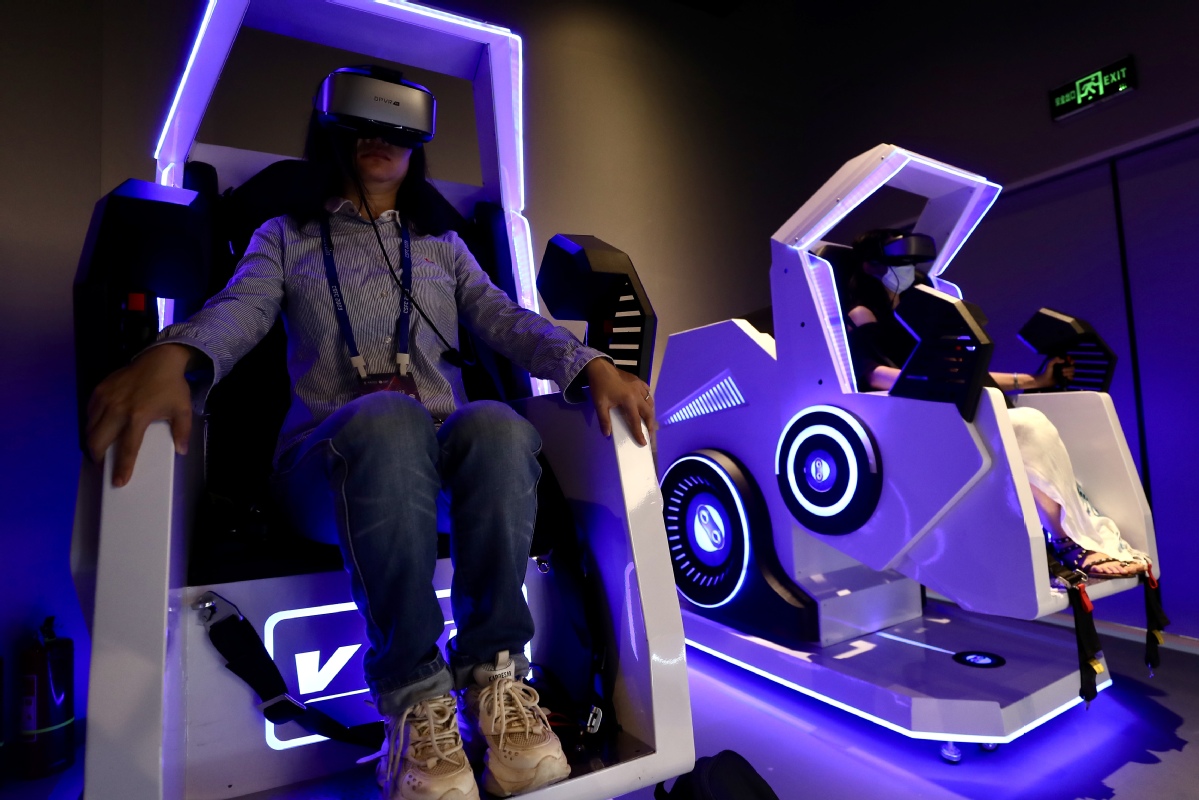 5月30日,2023中國科幻大會科幻產(chǎn)業(yè)新技術(shù)新產(chǎn)品展“元宇數(shù)流”展區(qū),觀眾感受科幻未來世界。中國日報(bào)記者 張威 攝