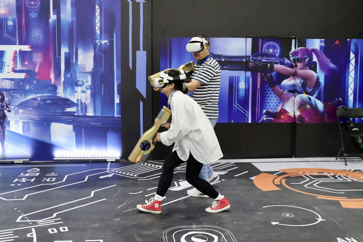 5月30日,2023中國科幻大會北京科幻嘉年華“潮幻奇遇季”板塊,觀眾在沉浸式運(yùn)動(dòng)娛樂空間體驗(yàn)。中國日報(bào)記者 張威 攝