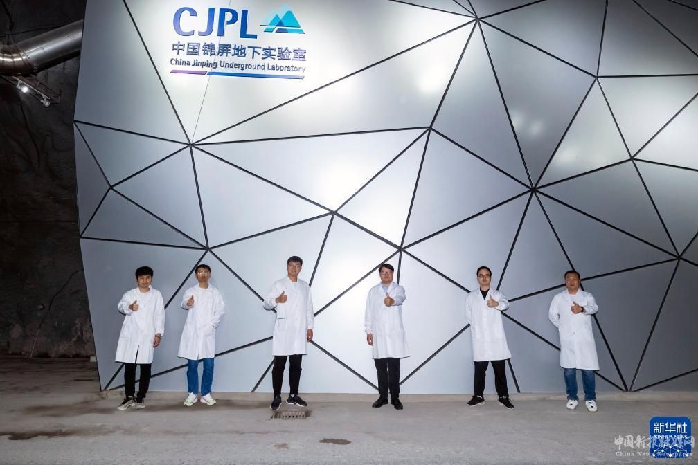 這是7月3日在位于錦屏山隧道的中國錦屏地下實驗室一期外拍攝的中國暗物質(zhì)實驗(CDEX)合作組成員梁藝帆、景明坤、王鈺鋒、楊麗桃、聶奇緣、尹箐浩(從左至右)。