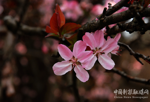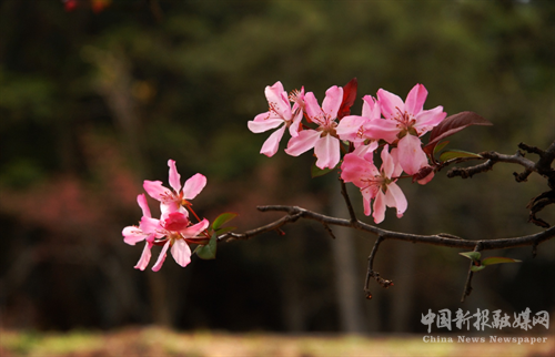 4月4日,在海拔1200多米的高寒山區(qū),新寧黃金瑤族鄉(xiāng)圳水村九龍?zhí)辽焦戎?,千余株嬌艷欲滴的野生垂絲海棠迎著春光悄然綻放,奏響春天的樂章。
