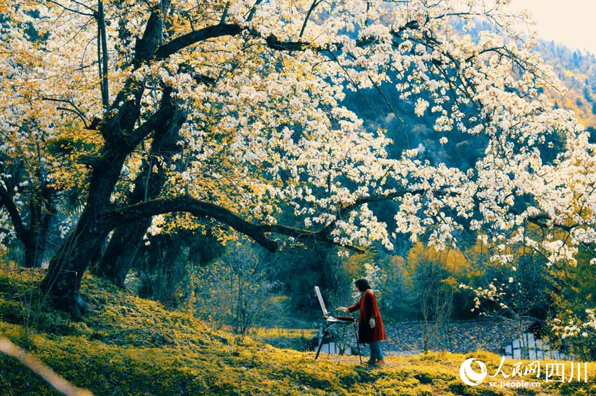 來自重慶的畫家趙中琳說:“東梨村給我的感受,絕對就是那種美的時光感。百年梨樹給人遒勁、滄桑之感,非常吸引畫家。”