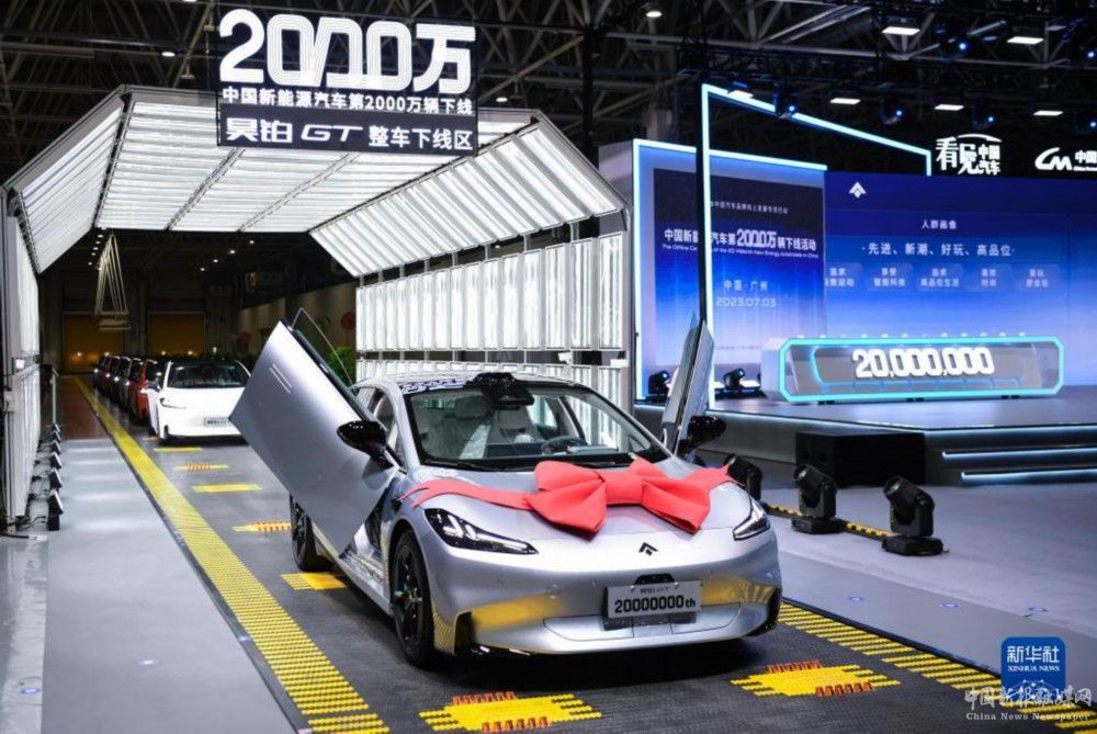 7月3日,中國新能源汽車第2000萬輛下線活動在廣州廣汽埃安第一智造中心舉行。