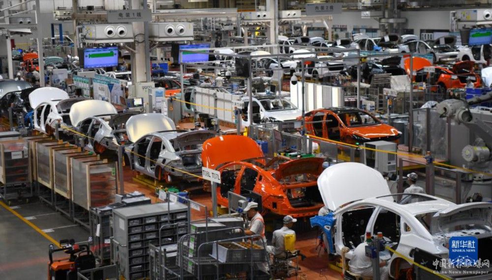 這是7月3日拍攝的廣州廣汽埃安第一智造中心新能源汽車焊裝車間。