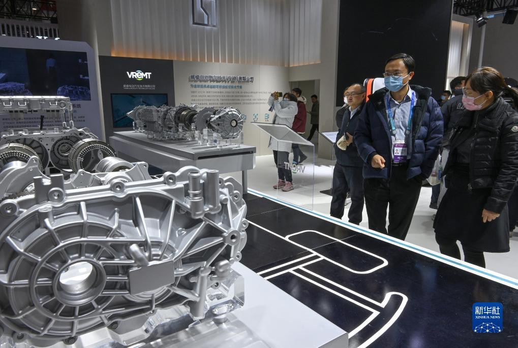 12月1日,參觀者在鏈博會智能汽車鏈展區(qū)吉利汽車集團展臺了解新能源汽車電機驅(qū)動系統(tǒng)。