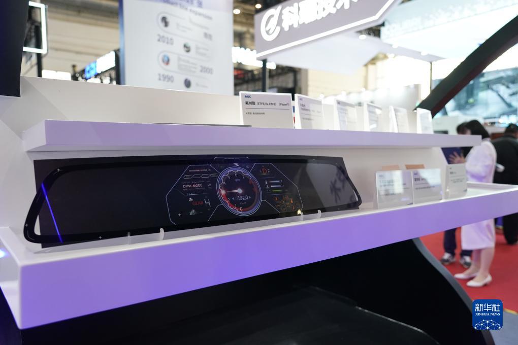 11月28日在鏈博會智能汽車鏈展區(qū)拍攝的車載顯示器玻璃蓋板。