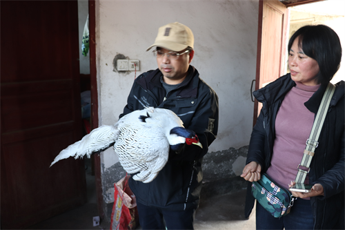 接到電話的陳福蘭和林上游正在家里為年夜飯準備食材,聽到有鳥兒受傷,丟下手中的活兒,一邊聯(lián)系對江村民 ,一邊聯(lián)系縣林業(yè)局,劉會長則在各群轉(zhuǎn)發(fā)消息,聯(lián)系會治療的醫(yī)生。下午2點,志愿者林上游、陳福蘭和縣林業(yè)局野生動物保護股股長鄧小強等一行四人驅(qū)車趕往80公里外的對江村,準備把白鷴接回縣城救治。