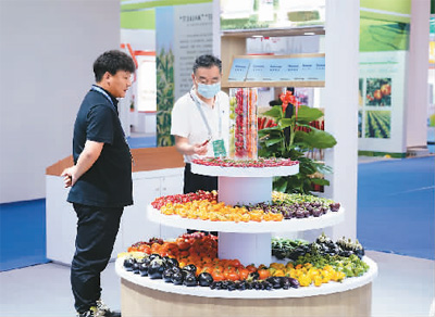 二〇二三中國種子大會暨南繁硅谷論壇四月一日至四日在海南三亞舉行,五十多家種業(yè)及產(chǎn)業(yè)鏈相關(guān)企業(yè)參展。圖為與會者在參觀論壇展覽。