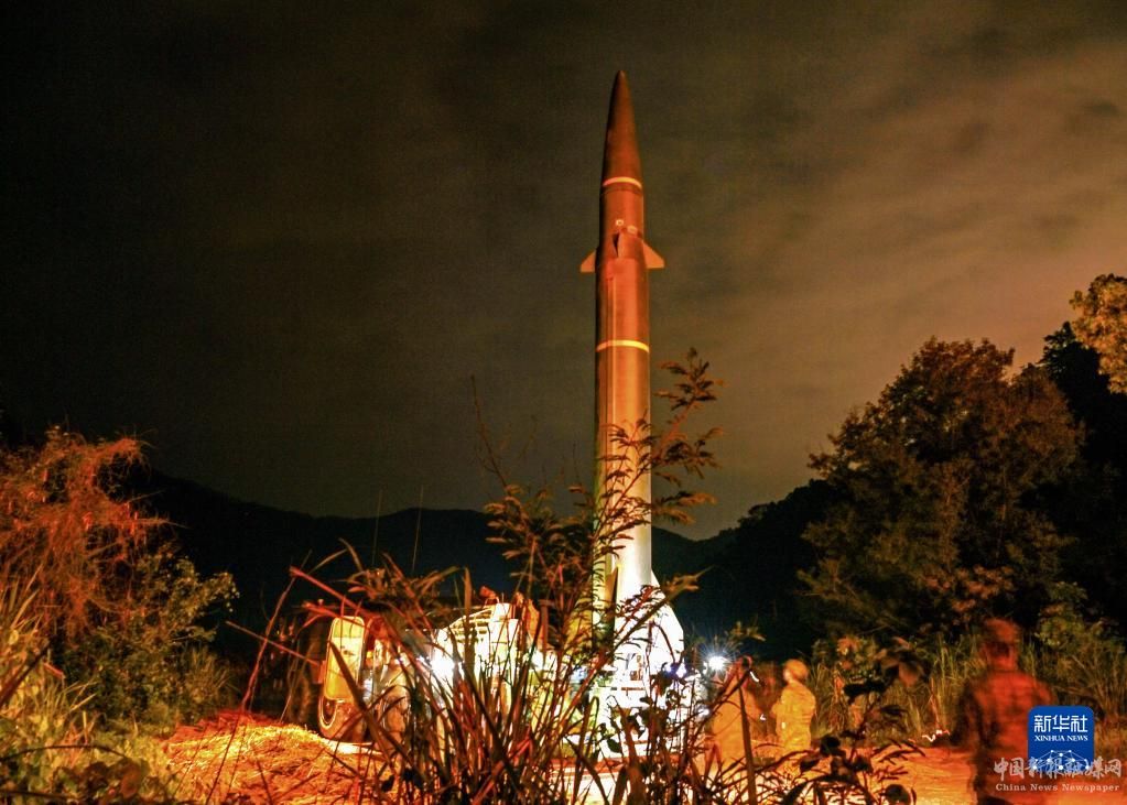 這是參演火箭軍某部在起豎導(dǎo)彈(4月8日攝)。新華社發(fā)(劉明松 攝)