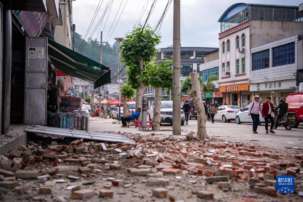 云南省保山市隆陽(yáng)區(qū)瓦窯鎮(zhèn)一處受損的沿街房屋(5月3日攝)。