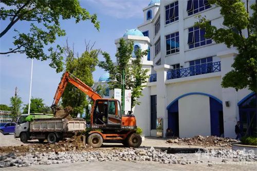 筆者近日來到此地,映入眼簾的首先是一排數(shù)量龐大的歐式建筑。它們色彩斑斕的顏色與湖面交相輝映,顯得十分華麗。然而,島上冷冷清清,游客稀少,有些地方仍在施工。隨便進(jìn)入一個衛(wèi)生間,竟然無水沖洗,不少蹲坑堆著大便。