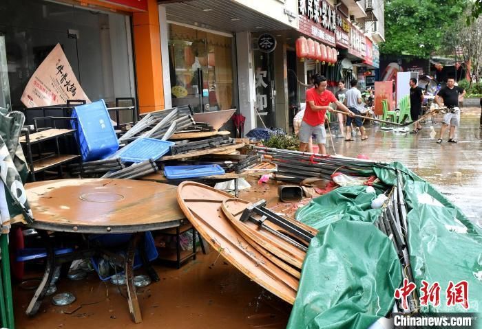 7月29日,受今年第5號(hào)臺(tái)風(fēng)“杜蘇芮”影響,福州市閩侯縣南嶼鎮(zhèn)忠觀街出現(xiàn)內(nèi)澇積水,許多店鋪被淹。積水退去后,市民積極開(kāi)展生產(chǎn)自救。