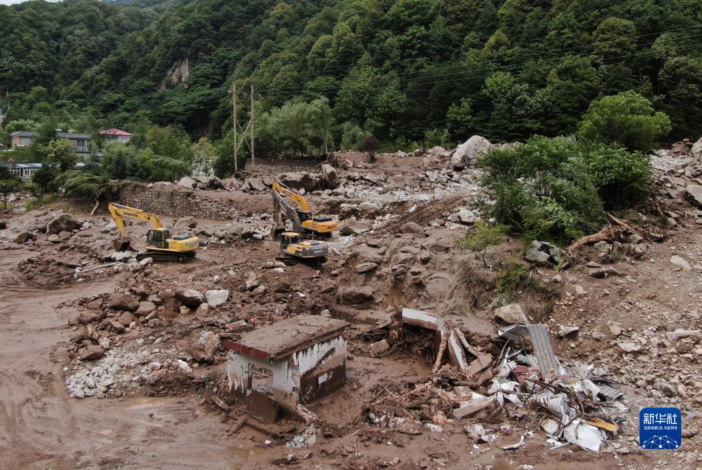 這是8月12日拍攝的西安市長安區(qū)灤鎮(zhèn)街道喂子坪村雞窩子組山洪泥石流災(zāi)害現(xiàn)場(無人機(jī)照片)。
