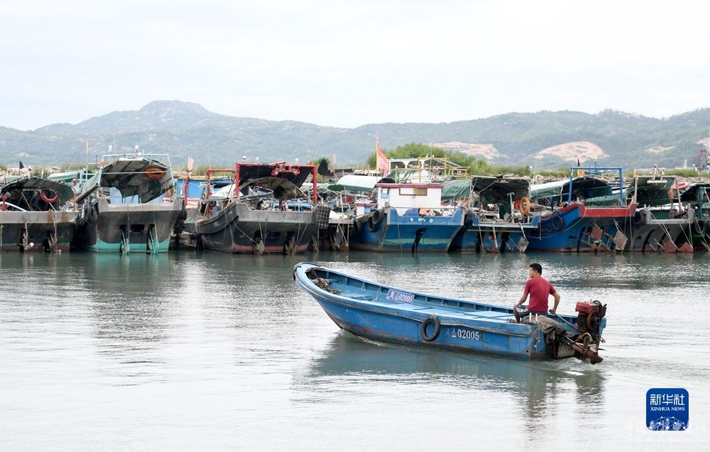 8月31日,在廣東省汕尾港避風(fēng)塘,漁船歸港避風(fēng),漁民陸續(xù)撤離。新華社記者 盧漢欣 攝