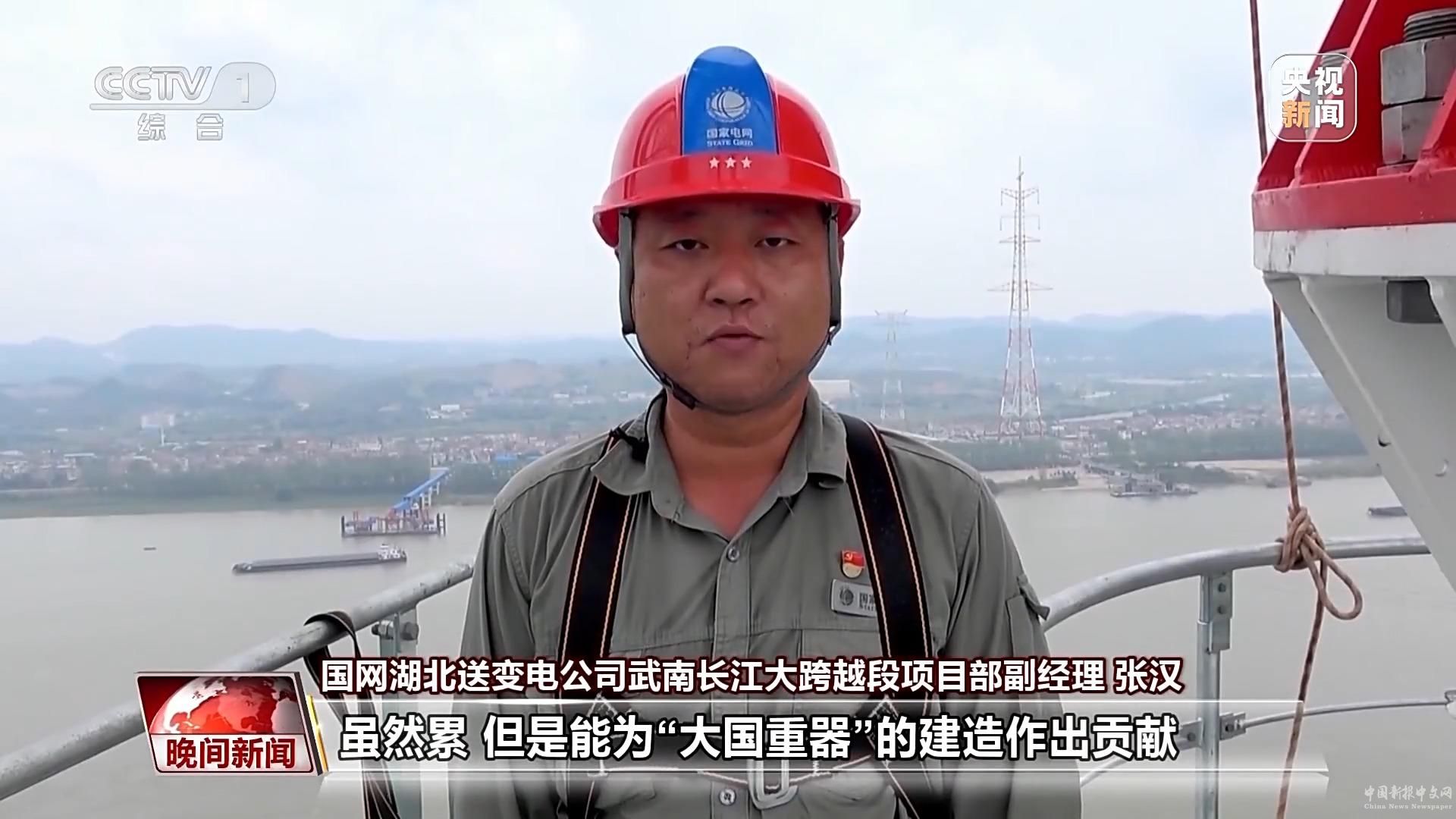 國網(wǎng)湖北送變電公司武南長江大跨越段項(xiàng)目部副經(jīng)理 張漢:雖然累,但是能為“大國重器”的建造做出貢獻(xiàn),我們感覺很榮幸。
