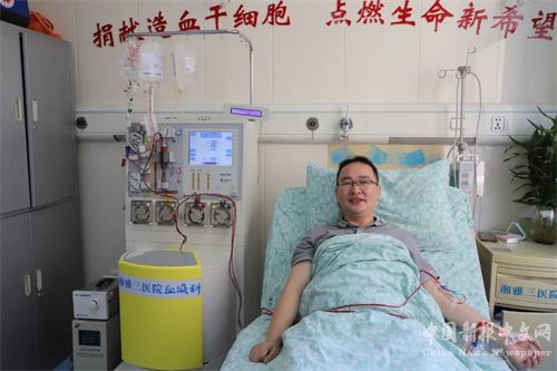 中國新報湖南訊(通訊員 楊芳 彭倚 )“等這一刻,很久了。”10月17日早上7點52分,長沙市第四醫(yī)院心血管內(nèi)科醫(yī)生曾卓此刻正靜靜地躺在造血干細胞采集室的病床上,看著血液從管子里流動,他的臉上不自覺地露出了笑容。在接下來的6個多小時內(nèi),他的430毫升“生命的種子”將為遠方一位白血病患者送去生的希望。