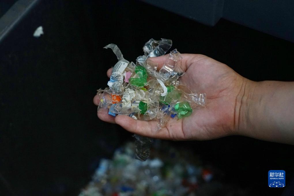 這是廢棄塑料瓶經(jīng)過破碎減量后得到的塑料片(10月30日攝)。新華社記者 林光耀 攝