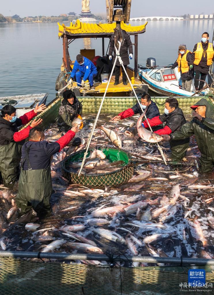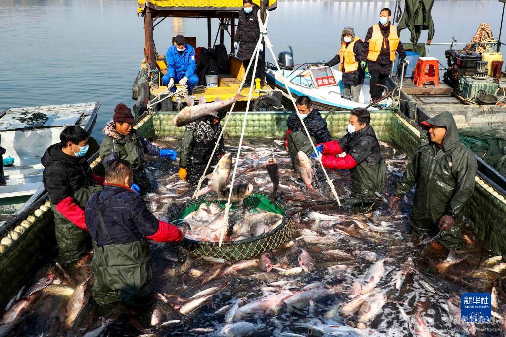 新年臨近,江蘇省泰州市姜堰區(qū)溱湖6000多畝水域進(jìn)入冬季捕魚季,漁民們抓緊捕撈供應(yīng)節(jié)日市場。
