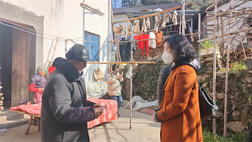 慰問組首先來到小阜村村部,與鎮(zhèn)村干部、選派干部深入交流,廣泛聽取意見建議,詳細(xì)了解幫扶工作開展情況、新冠病毒感染情況、村級發(fā)展現(xiàn)狀和困難等,對選派干部去年以來的工作給予肯定,并就下步做好定點(diǎn)幫扶工作提出明確要求。隨后,慰問組一行深入結(jié)對幫扶戶、困難黨員家中,詳細(xì)了解他們的身體健康狀況、生活生產(chǎn)情況,叮囑他們要做好新冠病毒感染的自我防護(hù),并為他們送上慰問金、慰問禮包(米面油等)和新春的祝福。