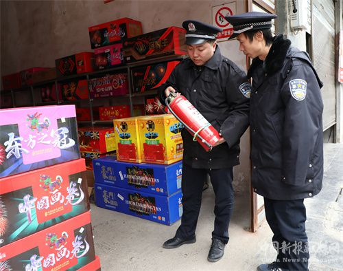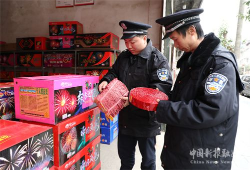 1月17日,湖南省保靖縣公安局清水坪派出所的民警在檢查煙花爆竹。在春節(jié)來(lái)臨之際,煙花爆竹進(jìn)入銷(xiāo)售旺季,該縣公安局組織民警對(duì)全縣煙花爆竹生產(chǎn)、存儲(chǔ)經(jīng)營(yíng)企業(yè)、零售網(wǎng)點(diǎn)等進(jìn)行一次地毯式清查,消除安全隱患,確保群眾過(guò)一個(gè)歡樂(lè)祥和的新春佳節(jié)。(俞采華 張昌峰)