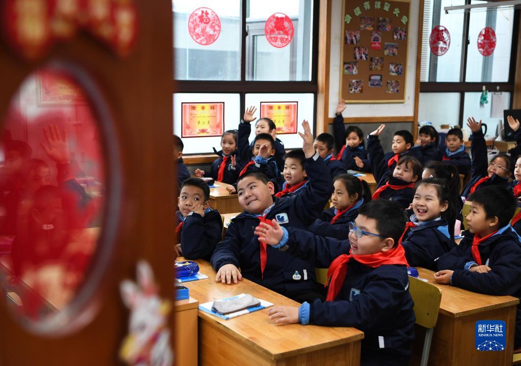 2月6日,西安市新城區(qū)后宰門小學的學生在“開學第一課”上踴躍發(fā)言。新華社發(fā)(鄒競一 攝)