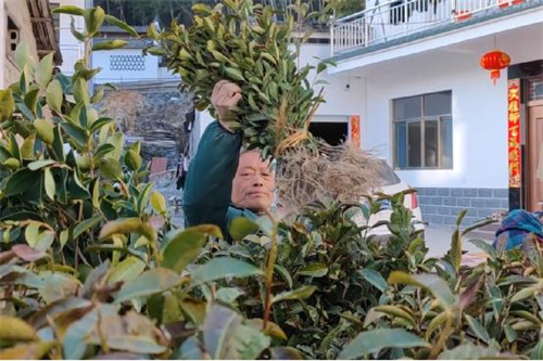 茶苗經(jīng)銷商將裝滿茶苗的車開進(jìn)村莊,然后向茶農(nóng)詳細(xì)介紹茶葉品種、特色、效益等情況。在詳細(xì)了解茶苗的優(yōu)勢后,不少村民當(dāng)場購買。茶葉是鶴城鄉(xiāng)農(nóng)民重要的收入來源,家家有茶園,戶戶種茶葉。因?yàn)樯鷳B(tài)環(huán)境好、茶葉品質(zhì)佳、茶葉收入高,鶴城鄉(xiāng)茶農(nóng)種茶積極性高。每年立春前后,許多人家都購買茶苗進(jìn)行栽種。O宋建忠 盛紅兵)