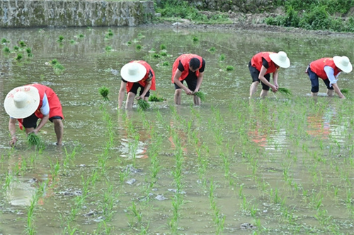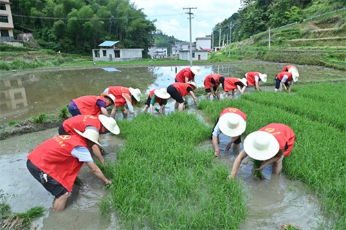 脫貧戶(hù)蔡松林夫婦現(xiàn)年80多歲,子女均己成家在外打工,夫妻倆今年還耕種了8畝多耕地,因農(nóng)忙季節(jié)缺乏勞力搶插中稻,心急如焚。該村黨支部獲悉情況后立即聯(lián)系金石橋鎮(zhèn)商會(huì),并組建了黨員志愿者幫耕隊(duì)為蔡松林搶插中稻。當(dāng)天,參與活動(dòng)的黨員身穿紅馬甲卷起袖子、擼起褲腳,集體“扎”進(jìn)水田,有的扯秧、運(yùn)送秧苗、拋秧,有的手腳麻利地插秧,秩序井然,呈現(xiàn)一派熱火朝天的春耕繁忙景象。
