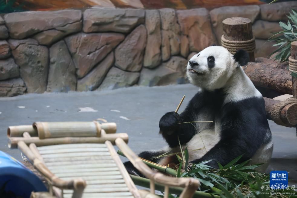 9月29日,西寧熊貓館的一只大熊貓?jiān)谶M(jìn)食。