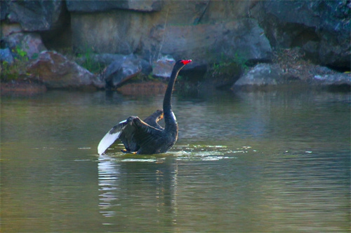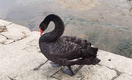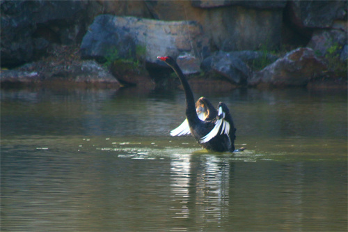據(jù)了解,黑天鵝是雁形目鴨科天鵝屬鳥(niǎo)類動(dòng)物。黑天鵝背覆花絮狀灰羽;頸部細(xì)長(zhǎng),常彎曲成優(yōu)雅的“S”形;喙鮮紅色,前端有“V”形白帶;虹膜赤紅色,跗跖和蹼黑色。 其體貌特征為全身除初級(jí)飛羽小部分為白色外,其余通體羽色光亮漆黑。(汪家進(jìn) 盛紅兵)