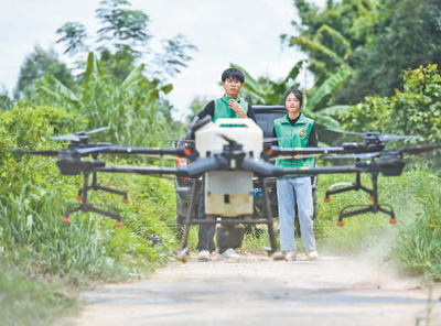 鏡頭故事·返鄉(xiāng)創(chuàng)業(yè)   9月13日,廣東廣州市增城區(qū)石湖村,90后“新農(nóng)人”沈笑芬(右)操作農(nóng)用無(wú)人機(jī)起飛。2018年,沈笑芬畢業(yè)后返鄉(xiāng)創(chuàng)業(yè),加入石鄉(xiāng)農(nóng)機(jī)專業(yè)合作社,帶領(lǐng)農(nóng)機(jī)團(tuán)隊(duì)盤活利用3000畝閑置田地,帶動(dòng)周邊4個(gè)村莊村民年增收超120萬(wàn)元。   新華社記者 鄧 華攝