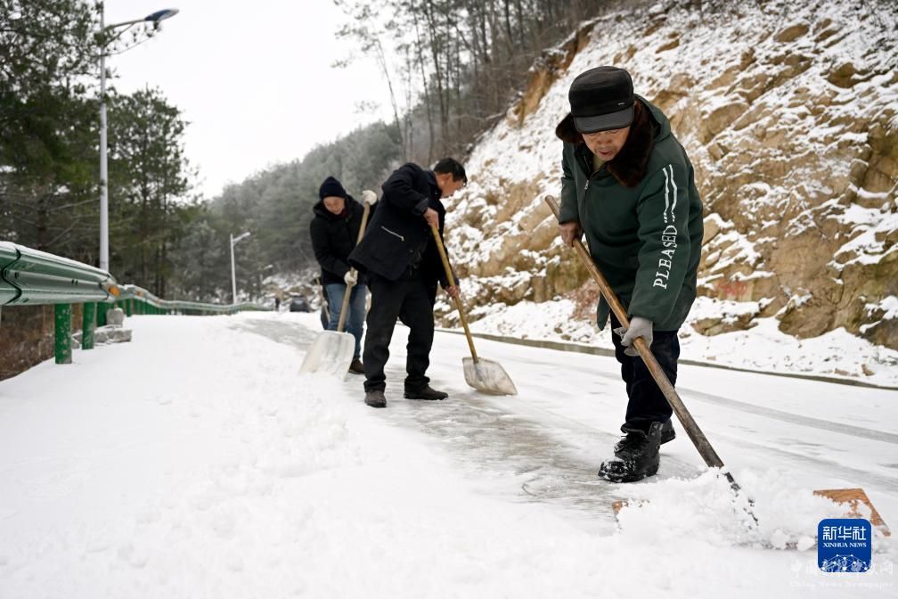 12月19日,安徽省安慶市岳西縣天堂鎮(zhèn)余安村村民在清理道路積雪。
