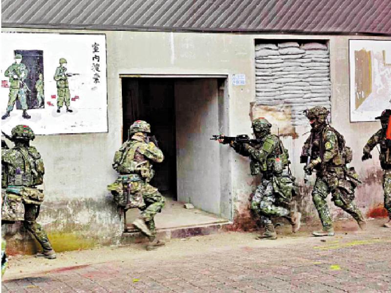 圖:臺軍退役中將帥化民表示,萬一打起巷戰(zhàn),臺灣老百姓一天都不會撐。圖為臺軍在訓(xùn)練。\資料圖片