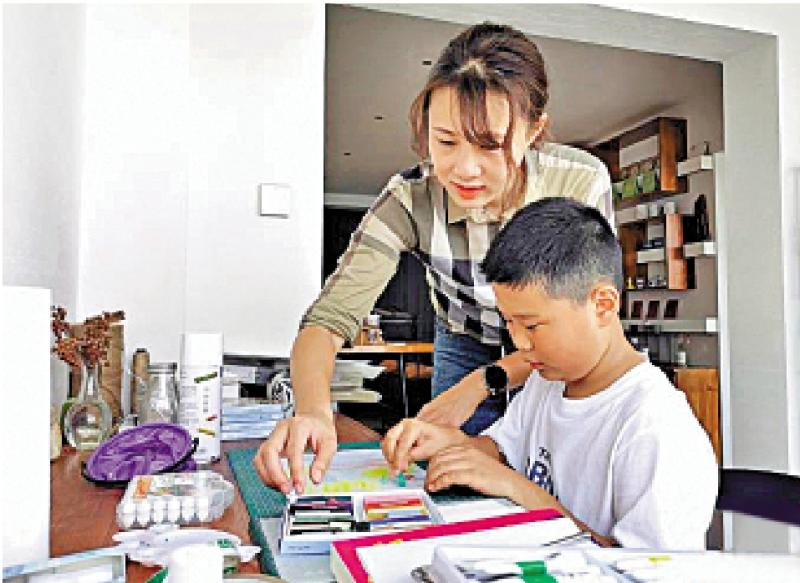 圖:吳婷婷在指導(dǎo)小朋友畫畫。\中新社