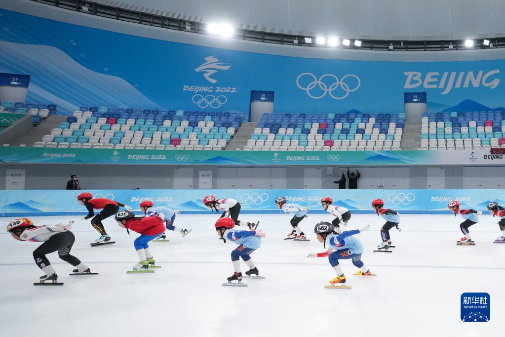 2023年1月6日,小朋友們?cè)趪?guó)家速滑館進(jìn)行短道速滑訓(xùn)練展示。新華社記者 鞠煥宗 攝