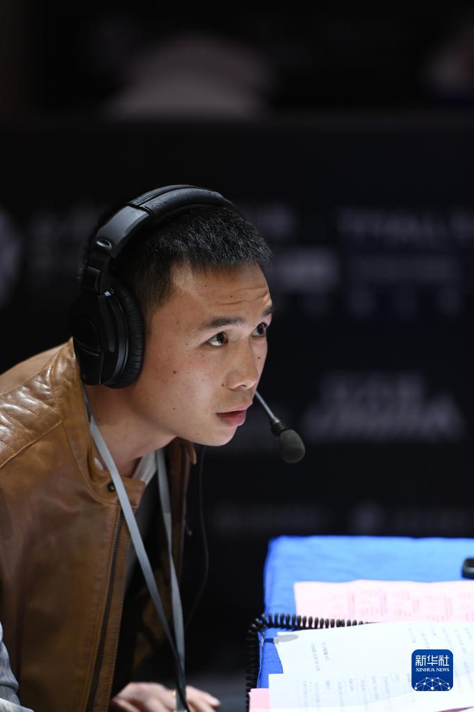 3月16日,前WBA羽量級(jí)拳王、中國(guó)拳手徐燦在場(chǎng)邊解說。新華社記者 侯昭康 攝