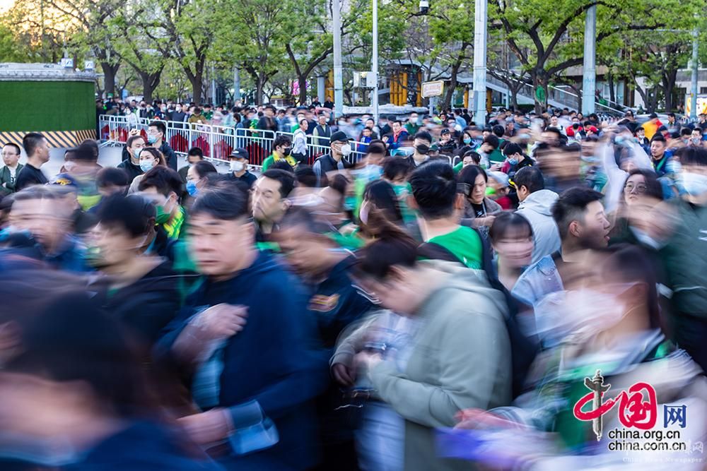 4月15日,2023賽季中超聯(lián)賽開幕式在改造復(fù)建后的北京工人體育場舉行,這是“新工體”首次開放迎來觀眾。圖為球迷準(zhǔn)備進(jìn)入球場。中國網(wǎng)記者 鄭亮攝