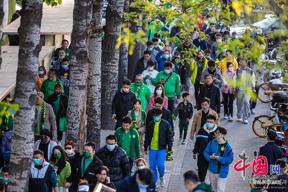 4月15日,改造復(fù)建后的北京工人體育場首次開放迎來觀眾。圖為球迷準(zhǔn)備進(jìn)入球場。中國網(wǎng)記者 鄭亮攝