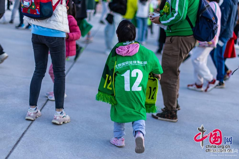 4月15日,改造復(fù)建后的北京工人體育場首次開放迎來觀眾。圖為一名小球迷準(zhǔn)備進(jìn)入球場。中國網(wǎng)記者 鄭亮攝