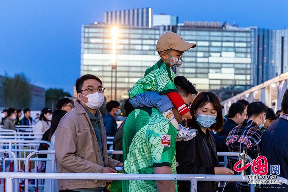 4月15日,改造復(fù)建后的北京工人體育場首次開放迎來觀眾。圖為球迷排隊(duì)進(jìn)入球場。中國網(wǎng)記者 鄭亮攝