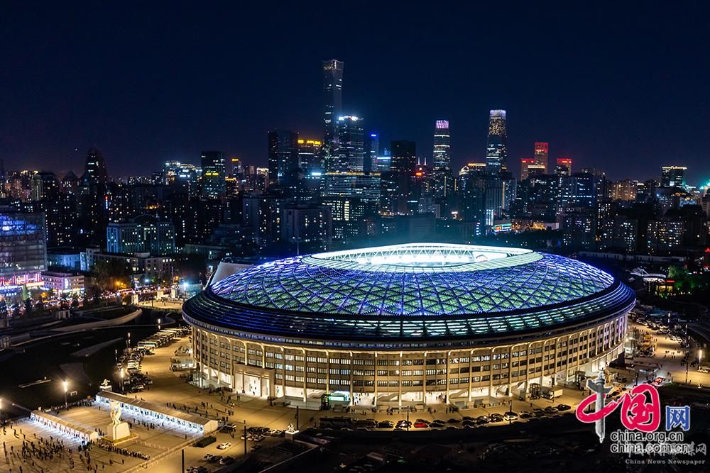 4月15日,2023賽季中超聯(lián)賽開幕式在改造復(fù)建后的北京工人體育場舉行,這是“新工體”首次開放迎來觀眾。圖為新工體夜景。中國網(wǎng)記者 鄭亮攝