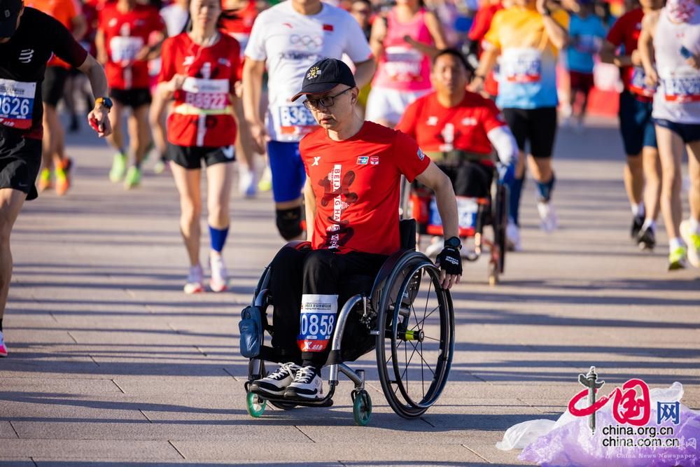 跑者隊(duì)伍中的輪椅選手格外引人注目。中國(guó)網(wǎng)記者 鄭亮攝