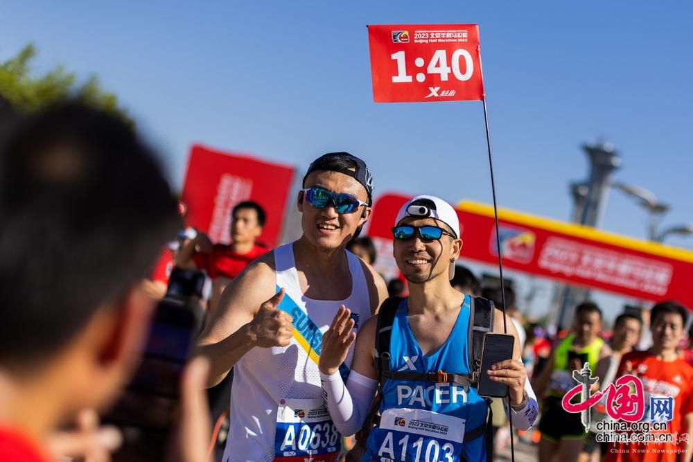 參賽選手與配速員合影留念。中國(guó)網(wǎng)記者 鄭亮攝