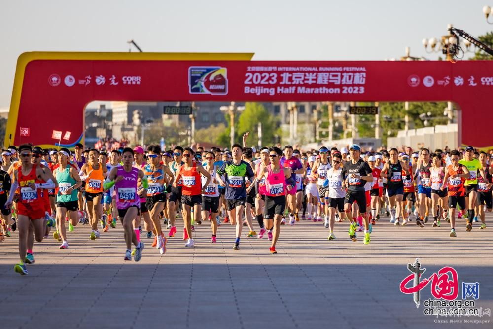 2023北京國(guó)際長(zhǎng)跑節(jié)-北京半程馬拉松在天安門廣場(chǎng)鳴槍起跑,20000名參賽者感受馬拉松運(yùn)動(dòng)魅力。中國(guó)網(wǎng)記者 鄭亮攝