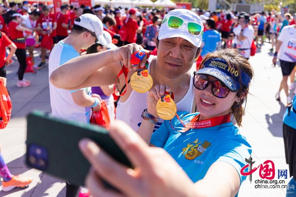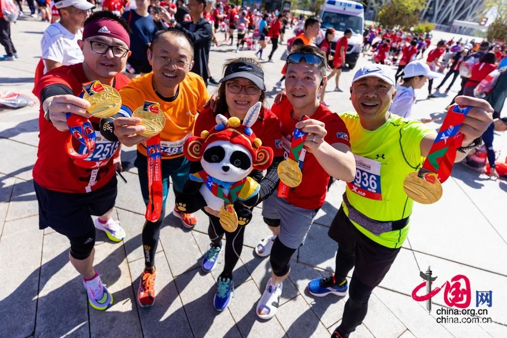 參賽選手手持完賽獎(jiǎng)牌拍照留念。中國(guó)網(wǎng)記者 鄭亮攝