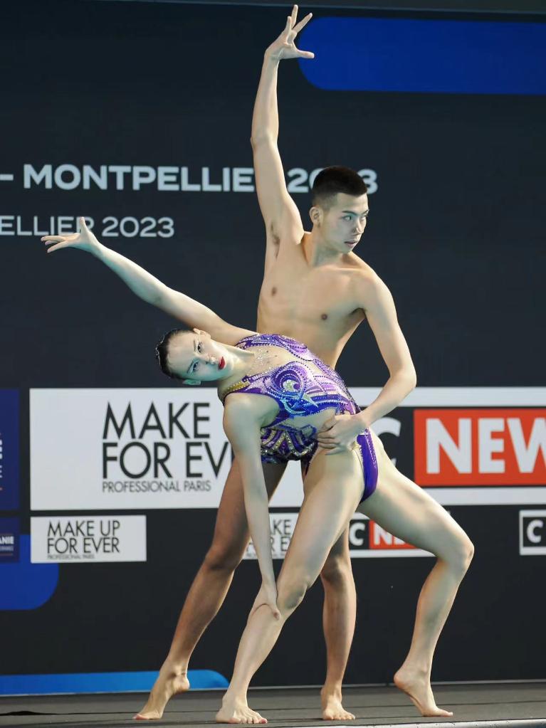 5日,石浩玙和張依瑤在比賽中。圖片來自中國(guó)花樣游泳隊(duì)